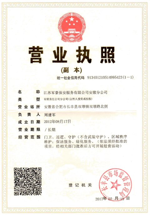 江蘇軍豪保安服務(wù)有限公司安徽分公司